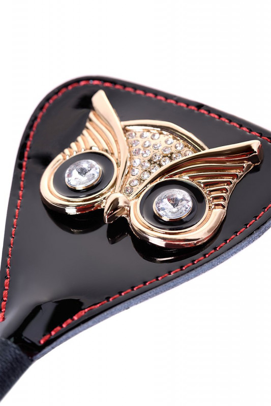 Выполнен стек из лакированной экокожи в черном цвете. Металлическая сова инкрустированная кристаллами придает аксессуару особенный шарм!